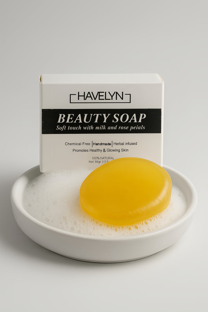 The Beauty Face Bar by Havelyn is enriched with natural vitamins such as vitamin E, C, B3, and B5. It offers multiple benefits, including reducing open pores, lightening the skin tone, and giving a radiant and healthy appearance. It effectively treats sun tanning, uneven skin tone, acne, scars, black spots, eye bags, freckles, pigmentation, wrinkles, and fine lines. To use, lather the soap using lukewarm water and gently massage it onto your face in circular motions. Avoid getting the soap in your eyes. The ingredients include Vitamin E, Vitamin C, Niacinamide, Alpha Arbutin, Almond Oil Extract, Coconut Oil Extract, Neem Extract, Licorice Extract, Orange Extract, and Vitamin B5.